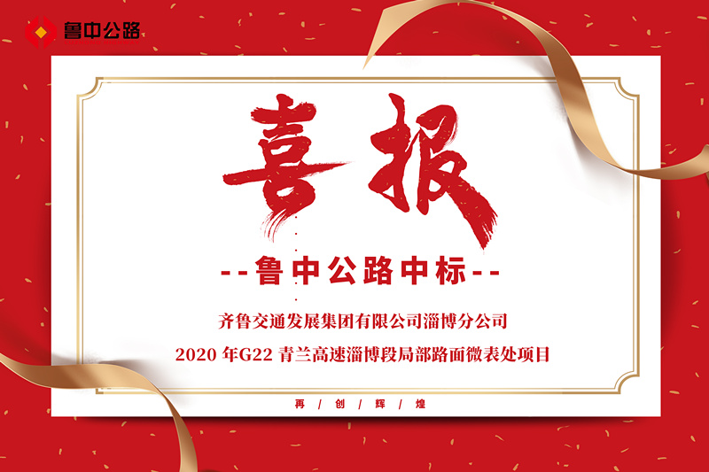 我公司收到中標(biāo)通知書,中標(biāo)齊魯交通發(fā)展集團(tuán)有限公司淄博分公司2020 年G22 青蘭高速淄博段局部路面微表處項(xiàng)目。