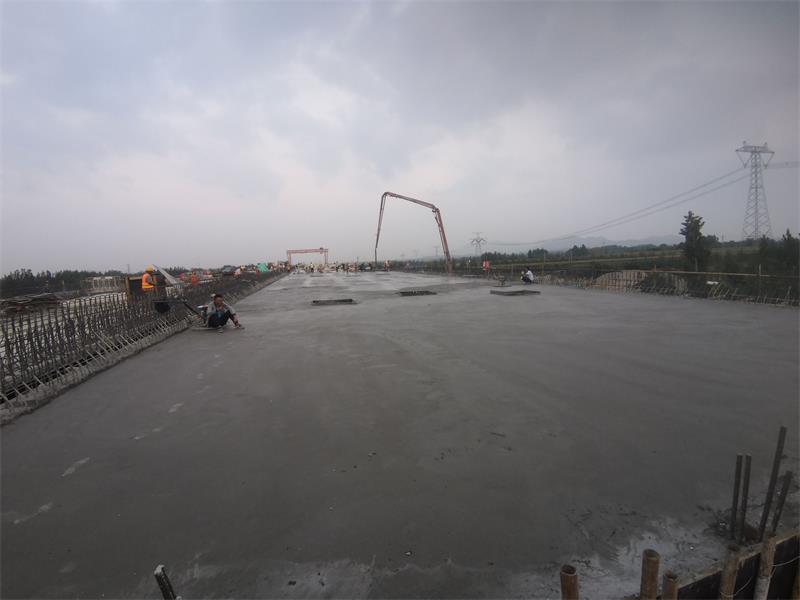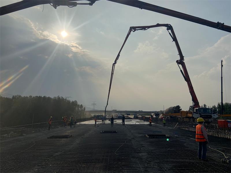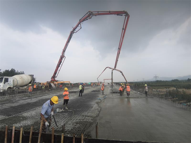 澆筑前,項目部組織召開興隆莊特大橋現(xiàn)澆箱梁澆筑專題會議,從鋼筋綁扎、模板安裝、混凝土原材料檢驗質(zhì)量控制及配合比優(yōu)化、機械設(shè)備和人員配置等方面做了充分的準(zhǔn)備工作。制定值班表,落實領(lǐng)導(dǎo)帶班、技術(shù)人員全程盯控管理。同時,安排12輛混凝土罐車趕赴施工現(xiàn)場,保證混凝土澆筑任務(wù)。在施工現(xiàn)場,2臺泵車同時澆筑,循環(huán)作業(yè),大大節(jié)約了施工時間,保證混凝土澆筑質(zhì)量。各部門各司其責(zé),全員待命,充分發(fā)揮拼搏、奉獻的企業(yè)精神。