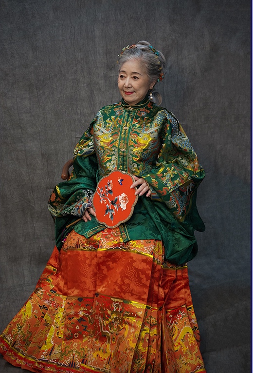 前一陣子,閑暇之余打開手機抖音,一個名叫“辰辰奶奶”的抖音賬號發(fā)布的視頻驚嘆了我,視頻中,奶奶著一身墨綠色大明漢服,伸手推門,被一聲“奶奶”叫住,不禁回眸,那一對眸子透亮如水晶,見她之時已是一眼萬年。后來上網(wǎng)搜索,視頻中的人就叫辰辰奶奶,今年已經(jīng)75歲了,年輕時在鄰居的帶領(lǐng)下。走上了學(xué)習京劇的道路,7年后從劇團畢業(yè),此后一直從事京劇表演,后來成為湖南省京劇藝術(shù)團的一名成員,出演過很多角色,角兒雖不大,但是7年的學(xué)習之路教會她演戲要有最起碼的戲德,即使是不起眼的角色,也要畫好最精致的妝容。