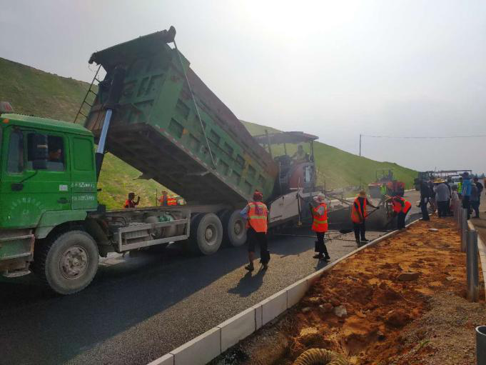 2020.04.15  K19+925-K20+324段左幅瀝青碎石上基層攤鋪,標志著標段正式進入路面油層施工階段。