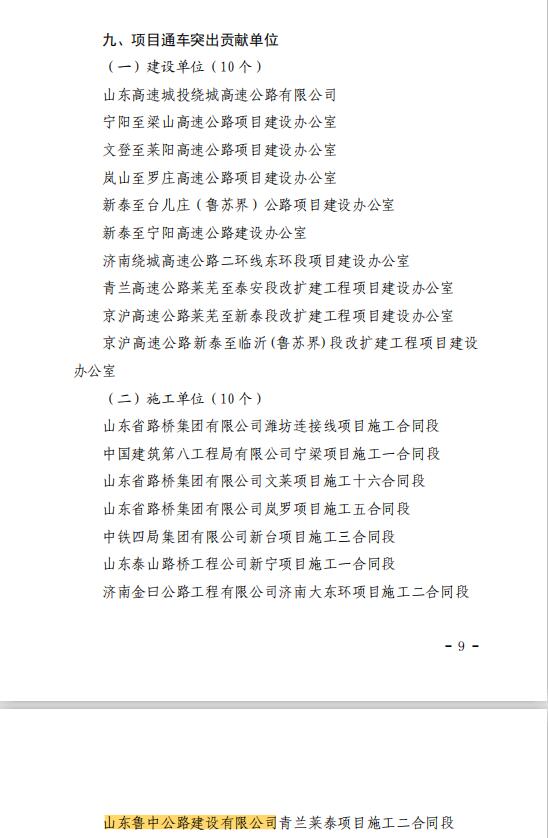 【喜訊】魯中公路榮獲業(yè)主頒發(fā)的“項(xiàng)目通車(chē)突出貢獻(xiàn)單位”、“百日大干優(yōu)勝單位”榮譽(yù)稱號(hào)