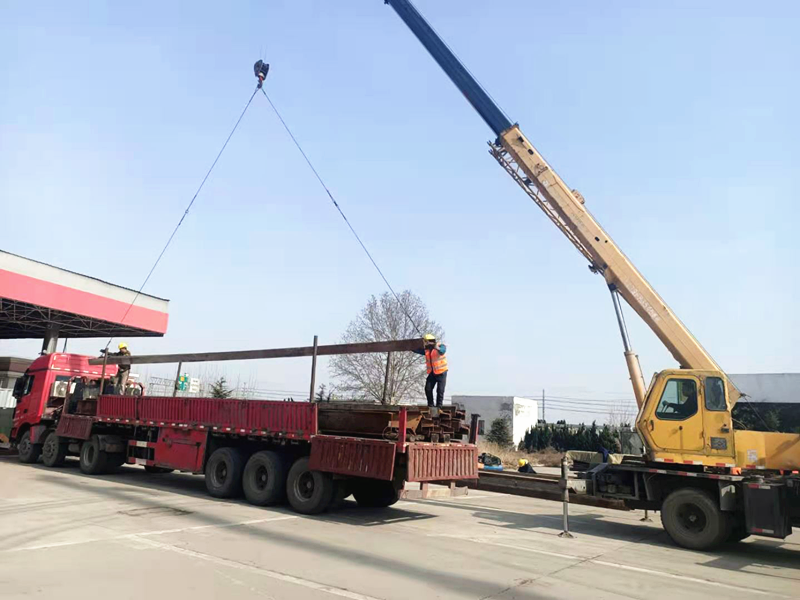 預(yù)制場工字鋼和龍門道軌進(jìn)場卸車安裝