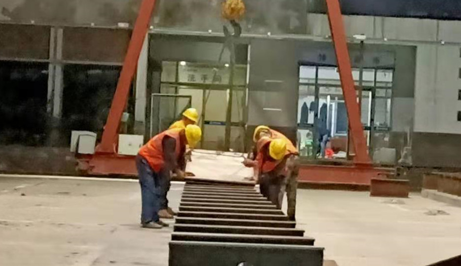 截止目前,已完成安裝三臺10噸龍門吊,一臺20噸龍門吊,1臺80+80噸龍門吊,預(yù)制東區(qū)龍門道軌進場432米,安裝260米,東區(qū)滑線立柱23根安裝完成,130m滑線安裝完成,預(yù)制西區(qū)軌道鋪設(shè)200米加固100米。
