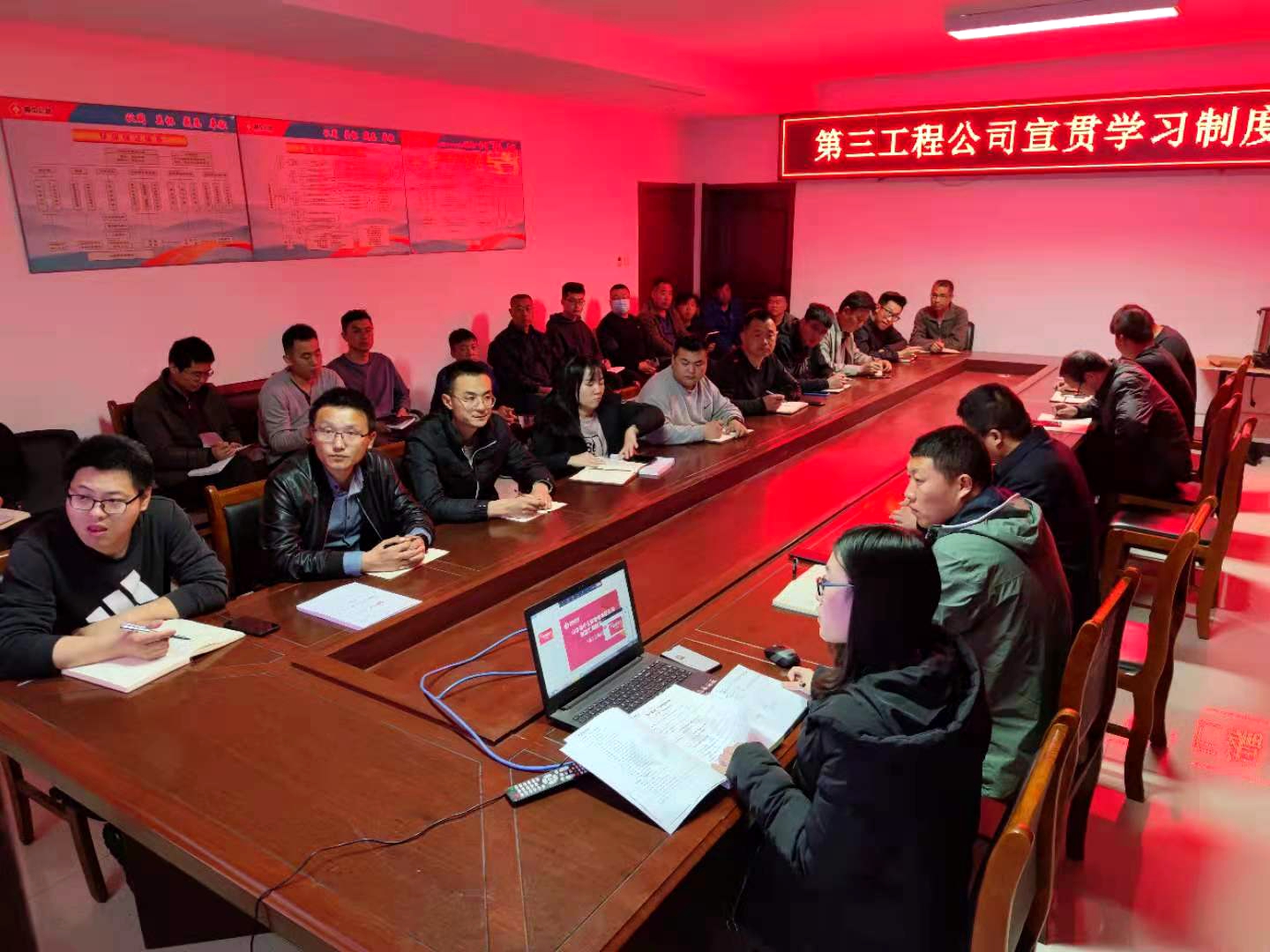 2021年4月6日晚,第三工程公司在分公司基地三樓會(huì)議室通過(guò)視頻屏幕共享的方式,組織公司所有職工學(xué)習(xí)2021版《山東魯中公路建設(shè)有限公司制度匯編》,針對(duì)制度匯編的主要內(nèi)容進(jìn)行了研讀宣貫,由分公司經(jīng)理安排公司各職能部室對(duì)制度中涉及到的主要工作內(nèi)容,包括行政管理、人事管理、成本控制、工程管理、安全管理、財(cái)務(wù)管理、市場(chǎng)拓展、獎(jiǎng)懲制度等做了進(jìn)一步的明確要求,并針對(duì)當(dāng)前的工作重點(diǎn)及重要工作時(shí)間節(jié)點(diǎn)進(jìn)行了梳理,與會(huì)人員認(rèn)真聽取并做好學(xué)習(xí)筆記。