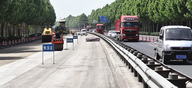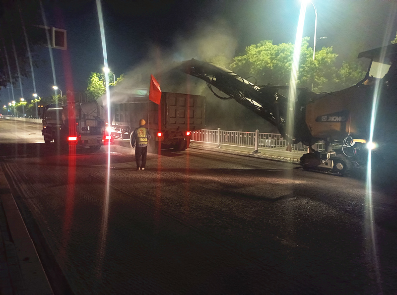 早5:00,全線封閉的14公里段落內,11個作業(yè)班組近百臺機械設備已全部到位,混凝土路面挖除,路面銑刨,水穩(wěn)瀝青攤鋪,灑水抑塵各項工作按照施工計劃全面展開,有序推進,人員往來、機械穿梭,到處一派繁忙大干的景象。烈日炙烤、瀝青蒸騰相互呼應,但仍比不過現場人員的似火熱情,吃一口飯、喝一口水,抹一把汗,便迅速投入到緊張的工作中。即便夜晚時分,施工現場依然燈火通明,各作業(yè)班組抓住車流量較少的有利時機,挑燈夜戰(zhàn)直至凌晨。每個人都在以自己的實際行動,搶時間、趕進度,扎扎實實的砸實每一天。