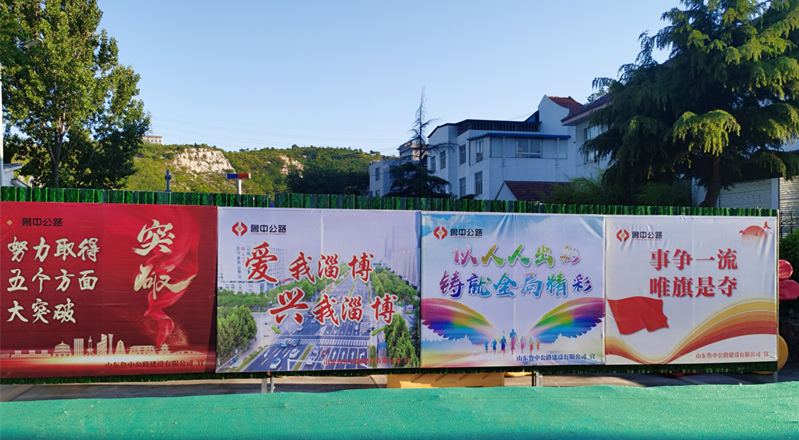 走在G205中修項目沿線,綠色擋板上漂漂亮亮地掛著各式宣傳圖,為半幅施工帶來的緊張車流融入了一道靚麗風景線,不僅妝點了施工現場,緩解了過往司機的疲勞與焦慮,也向社會各界展示了我市蓬勃發(fā)展的交通文化。這批宣傳圖畫,由魯中公路自行設計、制作,旨在宣傳淄博嶄新的精神面貌,在行政管理部、第一工程公司、交安工程公司配合協(xié)作下,歷時3天,就完成了80幅宣傳圖從設計到制作安裝的整個過程。