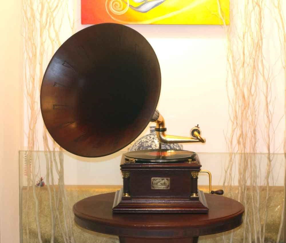 由于酷愛京劇,一年幾次的演出,根本滿足不了父親酷愛京劇的欲望,所以就想到了當(dāng)時非常時尚的留聲機。那個年代想買個留聲機,是個想也不敢想的事。當(dāng)時父親是橫下了一條心,首先要過娘的這一關(guān),他是忍受了娘不住的埋怨,又想盡一切辦法在朋友中湊錢。父親是個從不愿張口向人借錢的人,這次破例得到了朋友的幫助,把錢湊齊了。最終把留聲機搬回了家。用父親的話說:"我把四大名旦請回家了,還怕沒戲聽啊"!就這樣留聲機從此就住進了我們的家。留聲機像一位尊貴的客人,它的"地位"是顯赫的,(放在我們房間里最顯眼的地方),它有非常華麗的"服裝",(黑褐色的留聲機的盒子上蓋著一塊紅綢大方巾),旁邊放著一個比它高一點的放唱片的盒子,是那么的厚重,大氣。從此我們家每個晚上都是高朋滿坐,留聲機是主角兒,我父親與留聲機永遠是默契的搭當(dāng)。過了一段時間,來聽?wèi)虻娜嗽絹碓蕉?,屋子坐不下了,于是就轉(zhuǎn)到院子里,再后來留聲機走出了家門,走出了村莊,遠近幾個村莊,哪家有個喜事,我父親與留聲機必到,留聲機成了一個流動的小舞臺,它承載了父親的榮耀與快樂!