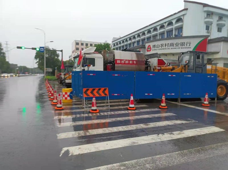 2021年6月29日,G205博山段迎來強降雨,個別路段積水嚴重,為保障G205博山段道路暢通,我部人員從清晨開始出動巡視人員數(shù)名,分為兩個小組,進行路面巡視。一組巡視安全設(shè)施及圍擋的標準擺設(shè)并查看導流車道的反光錐的齊全及完整,另一組巡視路面積水及排水情況。