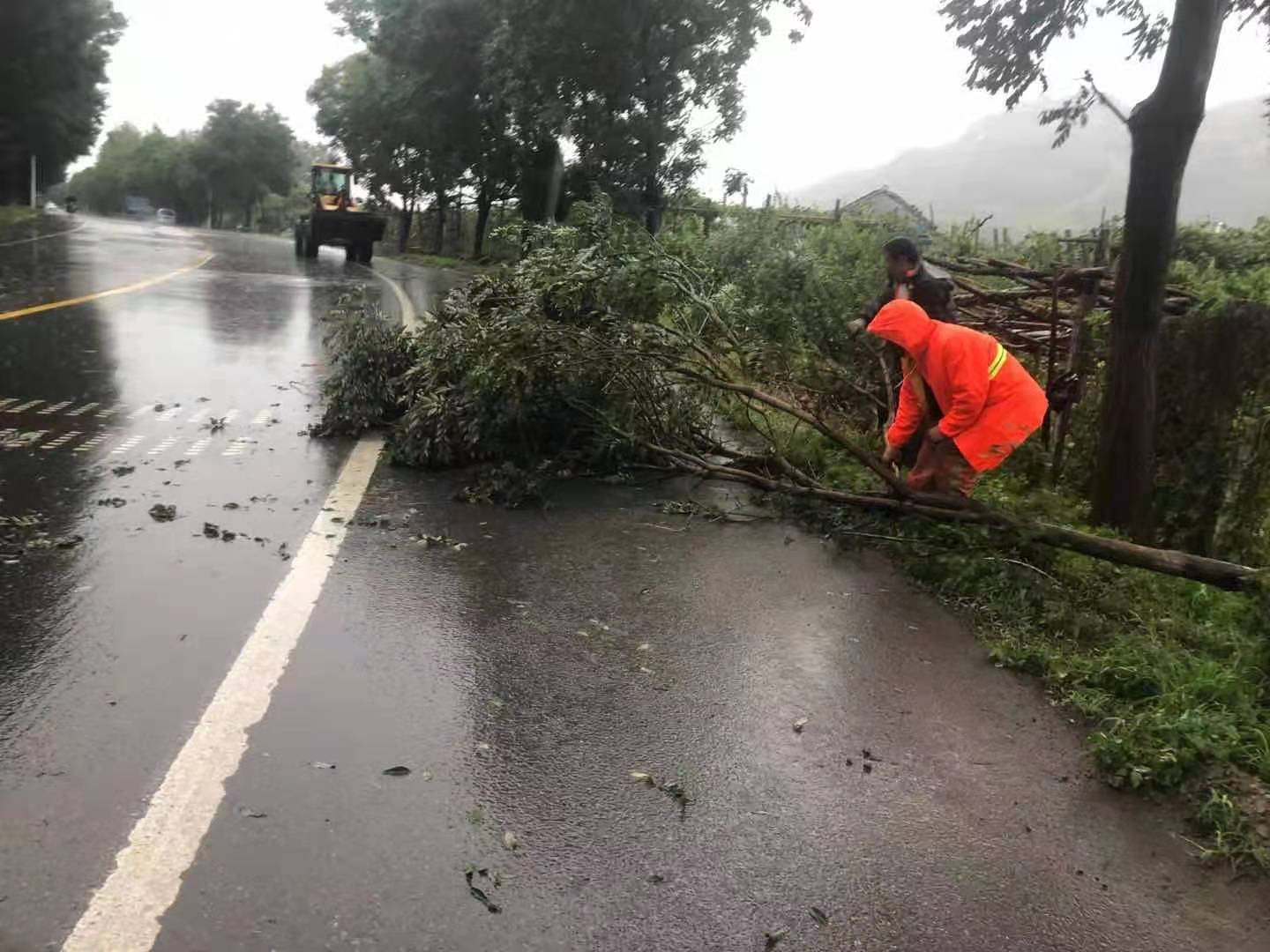 16時(shí)許,天色迅速變暗,狂風(fēng)暴雨來(lái)襲,博山小修所管養(yǎng)的路段S317臨歷線、S231張臺(tái)線、S232張魯線都受到了不同程度的影響,出現(xiàn)了樹(shù)木倒伏、邊溝堵塞等現(xiàn)象。博山小修項(xiàng)目按照應(yīng)急預(yù)案流程迅速向業(yè)主上報(bào)雨情,組織施工隊(duì)伍巡查路況,對(duì)危險(xiǎn)區(qū)域進(jìn)行隔離。疏通并清理沿線排水溝,清理倒伏樹(shù)木、塌方滑坡,保障了道路排水和安全暢通。
