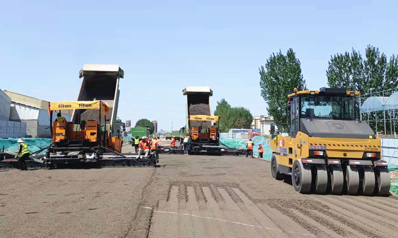 考工路瀝青上面層施工現(xiàn)場(chǎng)?