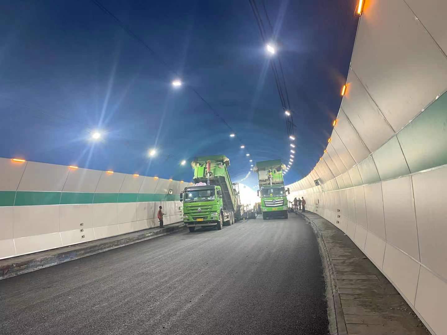 通過(guò)現(xiàn)場(chǎng)人員介紹,我得知隧道全程攤鋪瀝青的厚度為24公分,分別分四層進(jìn)行,現(xiàn)場(chǎng)正施工的便是最后一層。我不禁好奇地問(wèn)道,整個(gè)工程何時(shí)結(jié)束。當(dāng)施工人員告訴我所有瀝青工程將在三天內(nèi)完成,需要不連續(xù)施工72小時(shí)時(shí),我不禁的感嘆魯中公路真是一個(gè)值得我們努力學(xué)習(xí),努力拼搏的地方?。?br /> 馬公祠隧道已在身后,我的路依然向前。