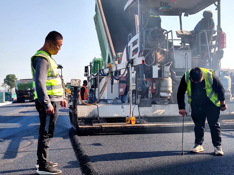 攤鋪厚度隨時(shí)檢測(cè),保證每平方松鋪厚度都滿足技術(shù)規(guī)范要求