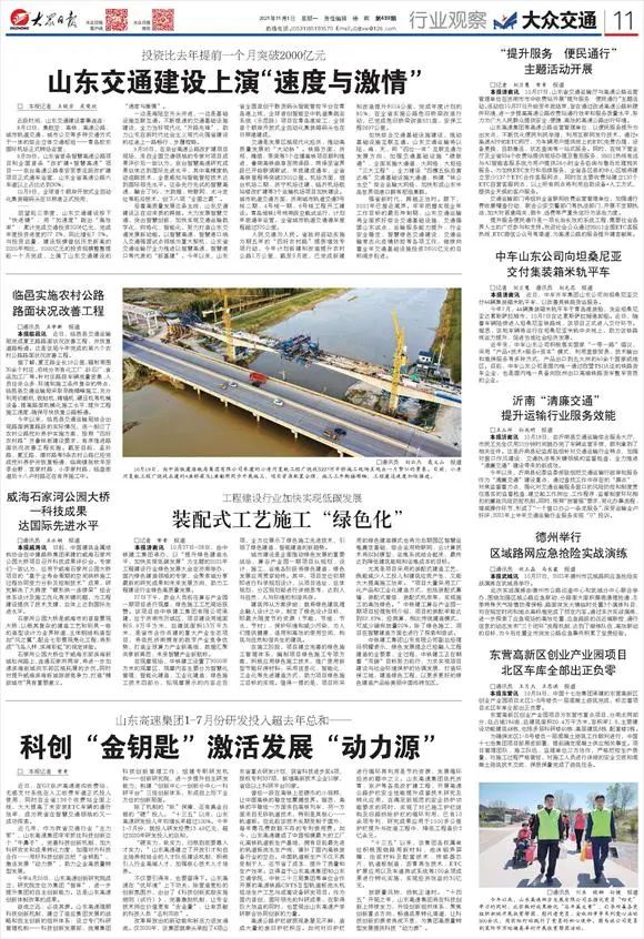 強(qiáng)省新時(shí)代,跨越正當(dāng)時(shí)。眼下,2021年已接近尾聲。牢牢把握實(shí)現(xiàn)全年工作目標(biāo)的最后沖刺期,山東交通運(yùn)輸將全面抓好綜合交通基礎(chǔ)設(shè)施、交通強(qiáng)國(guó)山東試點(diǎn)、運(yùn)輸服務(wù)能力提升、行業(yè)安全穩(wěn)定、智慧綠色交通建設(shè)、交通運(yùn)輸常態(tài)化疫情防控等各項(xiàng)工作,繼續(xù)向著全年交通基礎(chǔ)設(shè)施投資2600億元的目標(biāo)闊步前進(jìn)。