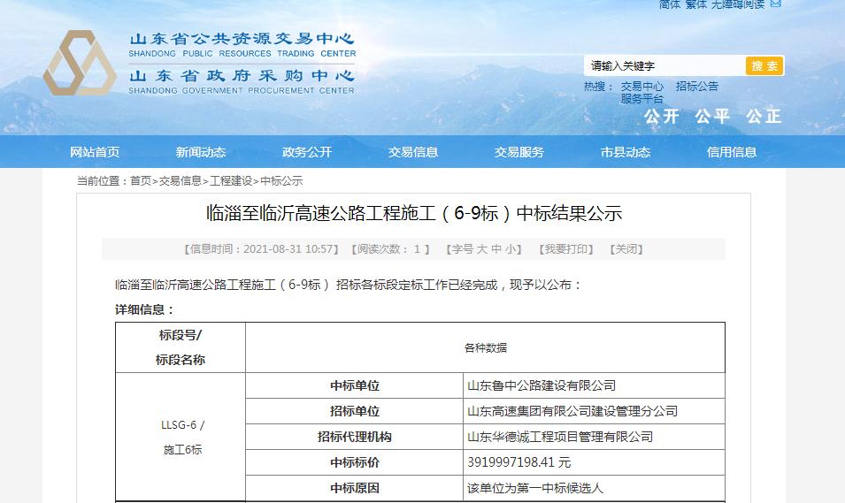 2021年8月31日,山東省公共資源交易中心發(fā)布了臨淄至臨沂高速公路工程施工(6-9標)中標結(jié)果公示,魯中公路中標施工6標段。消息傳來,公司上下一片沸騰,人人磨拳擦掌,爭相報名投入到臨臨建設中去。