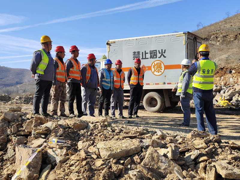 西里互通碎石加工廠在場地建設時,山體硬質(zhì)巖石居多,為加快施工進度,同時也為下步路基爆破施工積累經(jīng)驗,我部計劃采取爆破施工,經(jīng)過前期的工作準備,三分部于2021年12月1日在西里互通碎石加工廠對場地山體順利完成了爆破施工。整個施工過程嚴格按照操作規(guī)范實施,并且沂源縣治安大隊對整個爆破過程進行全程現(xiàn)場監(jiān)督,對安全措施做出了充分肯定。
