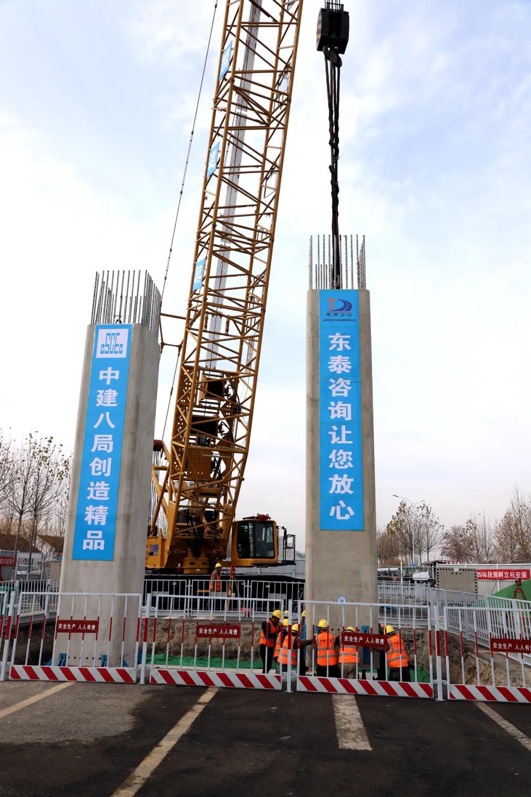 山東東泰工程咨詢有限公司寶山路項目總監(jiān)理工程師張鵬介紹說,項目自開工建設(shè)以來,東泰咨詢公司總監(jiān)辦堅持高起點、高標(biāo)準(zhǔn)、高質(zhì)量、高要求,從質(zhì)量控制、技術(shù)方案、工藝流程、安全管理等多方面加強(qiáng)與施工單位的交流,充分發(fā)揮“咨詢式、服務(wù)型”監(jiān)理優(yōu)勢,圍繞“落實五化要求、弘揚工匠精神、打造品質(zhì)工程”目標(biāo),努力做到事前監(jiān)理、事中和事后控制,從源頭管控工程質(zhì)量,堅持全程旁站、層層把控、現(xiàn)場指導(dǎo),積極協(xié)助施工單位“出點子、想辦法、拿實招”,確保了首根預(yù)制立柱吊裝的順利完成,科學(xué)有序加快推進(jìn)項目建設(shè),為后續(xù)工程建設(shè)積累了可復(fù)制、可推廣的經(jīng)驗,也為淄博市城市快速路網(wǎng)建設(shè)駛?cè)?ldquo;快車道”,按下“加速鍵”貢獻(xiàn)智慧和力量。