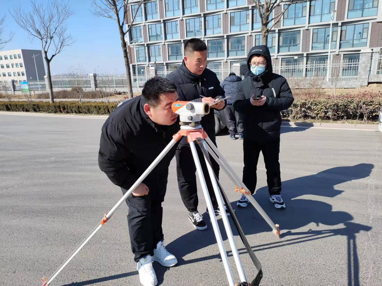 在四等水準(zhǔn)測(cè)量比賽中,雖然室外氣溫偏低,但參賽選手們依然信心滿滿、精神抖擻,各隊(duì)伍找點(diǎn)、觀測(cè)水準(zhǔn)路線,填寫標(biāo)尺讀數(shù),計(jì)算視距差等一系列操作規(guī)范合理,快而精準(zhǔn)。