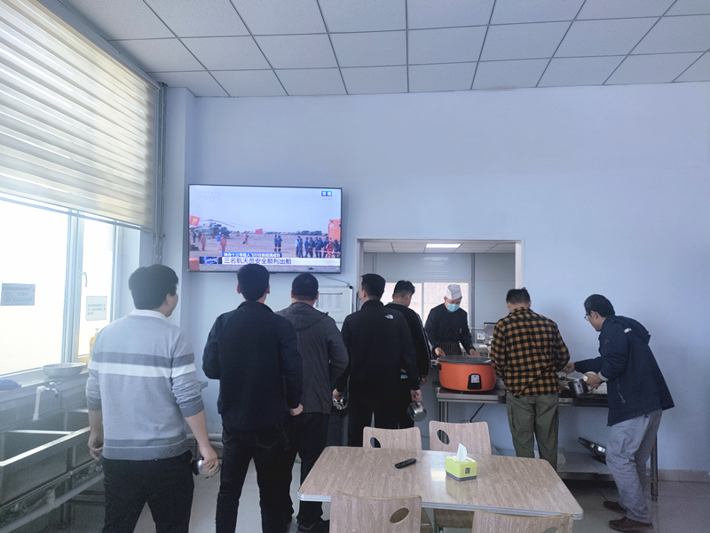 早上6時30分,伴隨著央視的《朝聞天下》開啟一天的新生活,員工在吃飯之余能及時了解國內(nèi)外時事資訊、文化體育新聞。午餐時間段,工作了一上午的員工,通過《新聞直播間》獲取新聞資訊、服務(wù)休閑等相關(guān)內(nèi)容。晚餐則被《共同關(guān)注》霸屏,節(jié)目以“關(guān)注弱勢群體,搭建互助平臺,講述新聞故事,彰顯和諧關(guān)懷”為欄目定位,以打造中國百姓的精神家園為欄目核心理念,滿足項目員工能在第一時間了解國內(nèi)外大事。