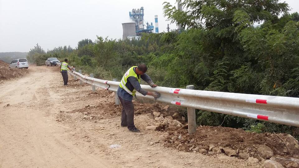 基礎分公司S102路基三分部工人安裝防撞護欄