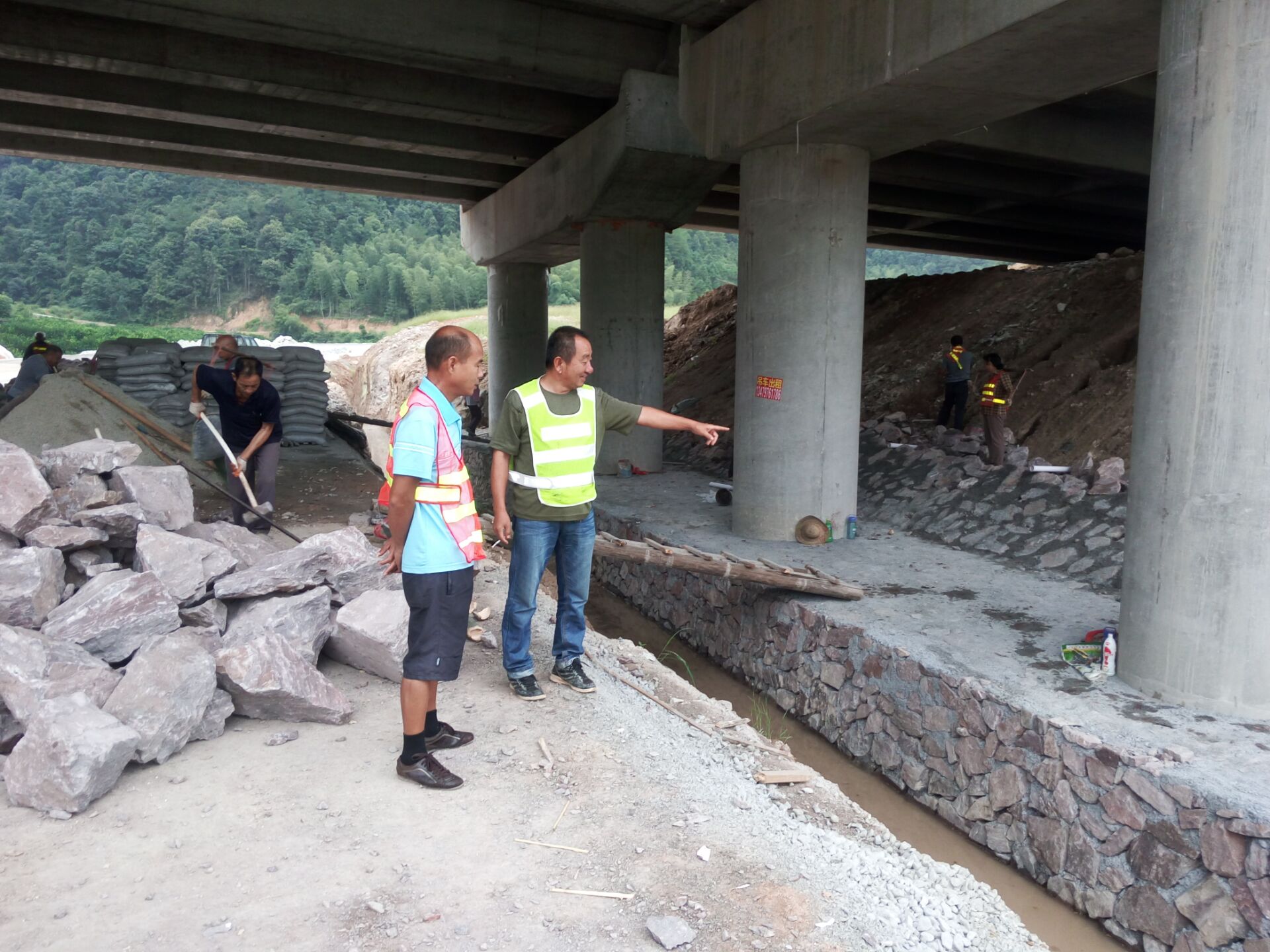 基礎分公司江西項目部質檢負責人金新平檢查橋下護坡施工