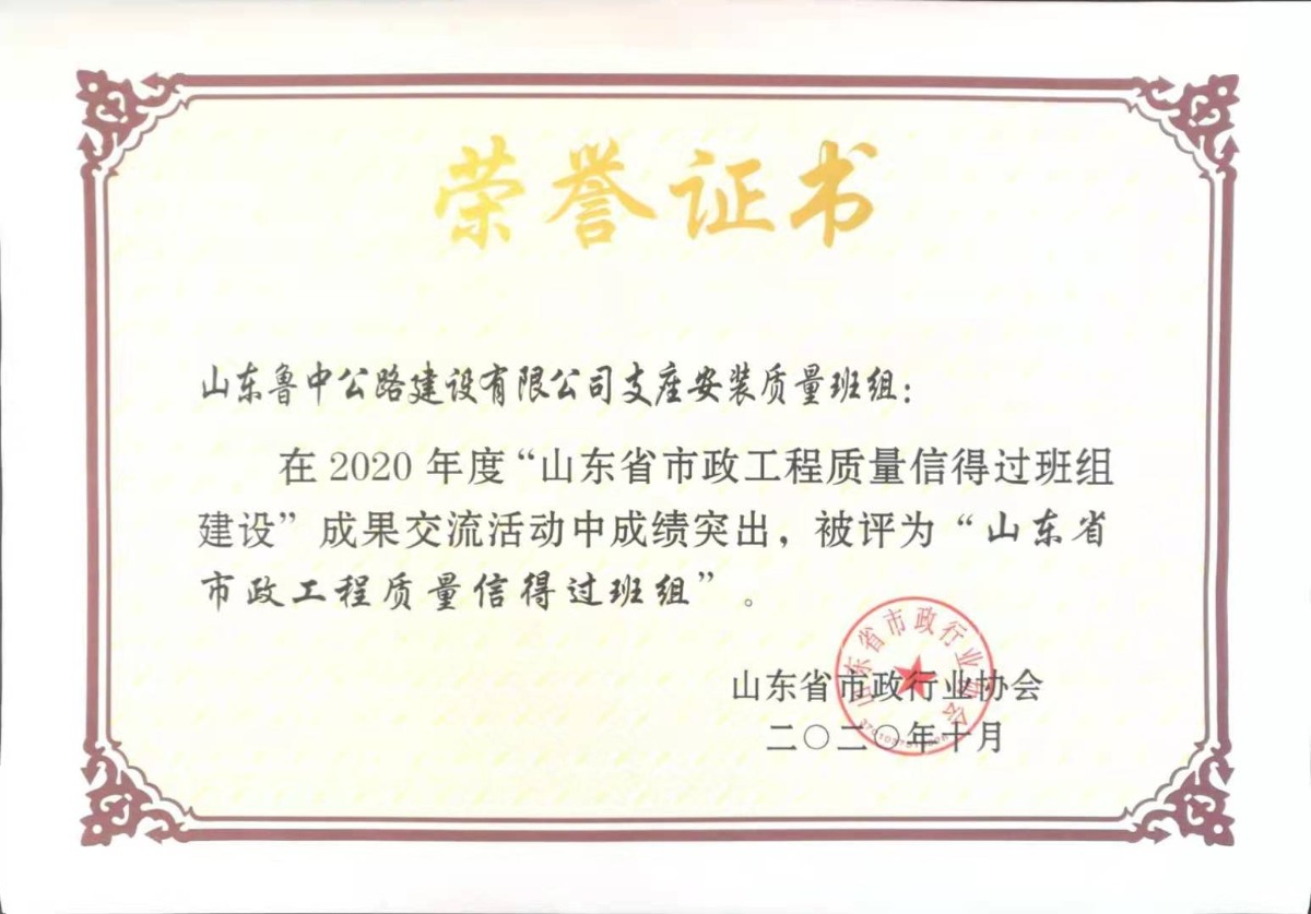 2020年度山東省先進(jìn)市政工程施工企業(yè)