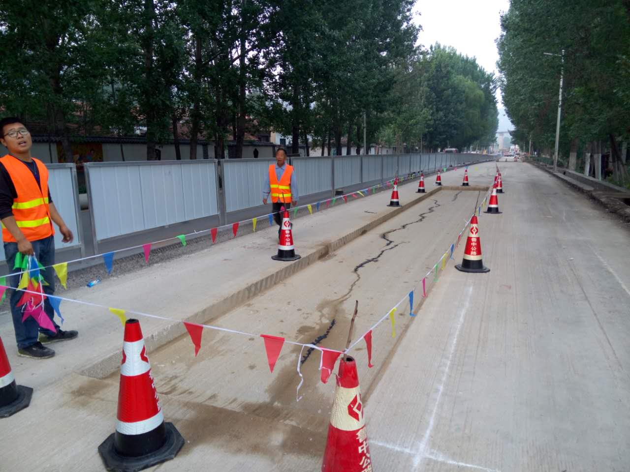 大修段采用反光錐、標志牌圍擋,施工區(qū)域使用彩鋼瓦隔離。