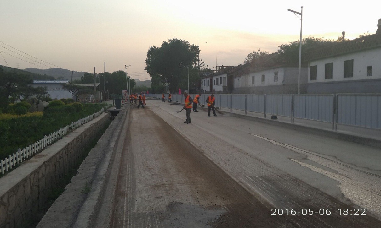 清掃完畢后下承層灑水濕潤