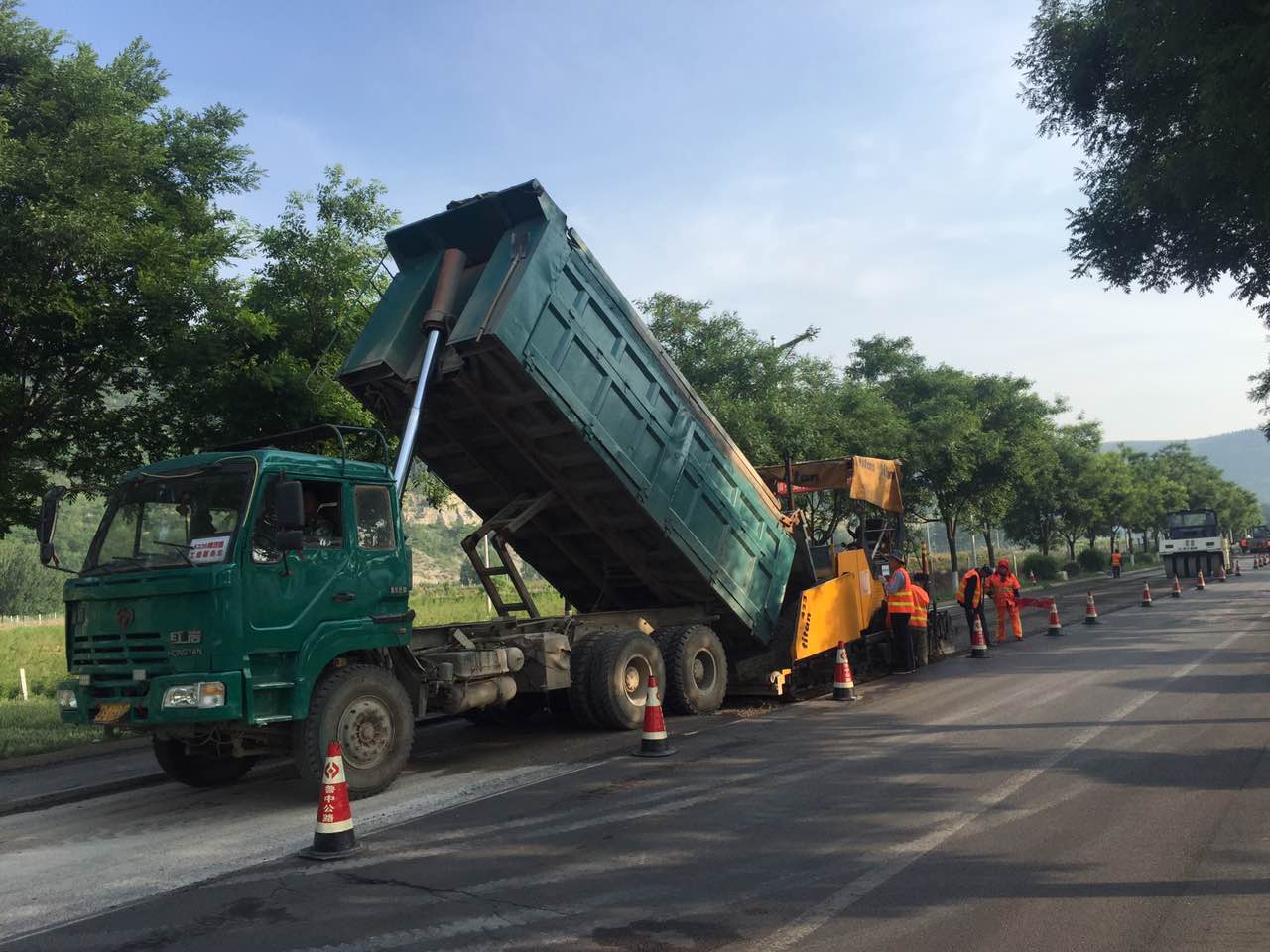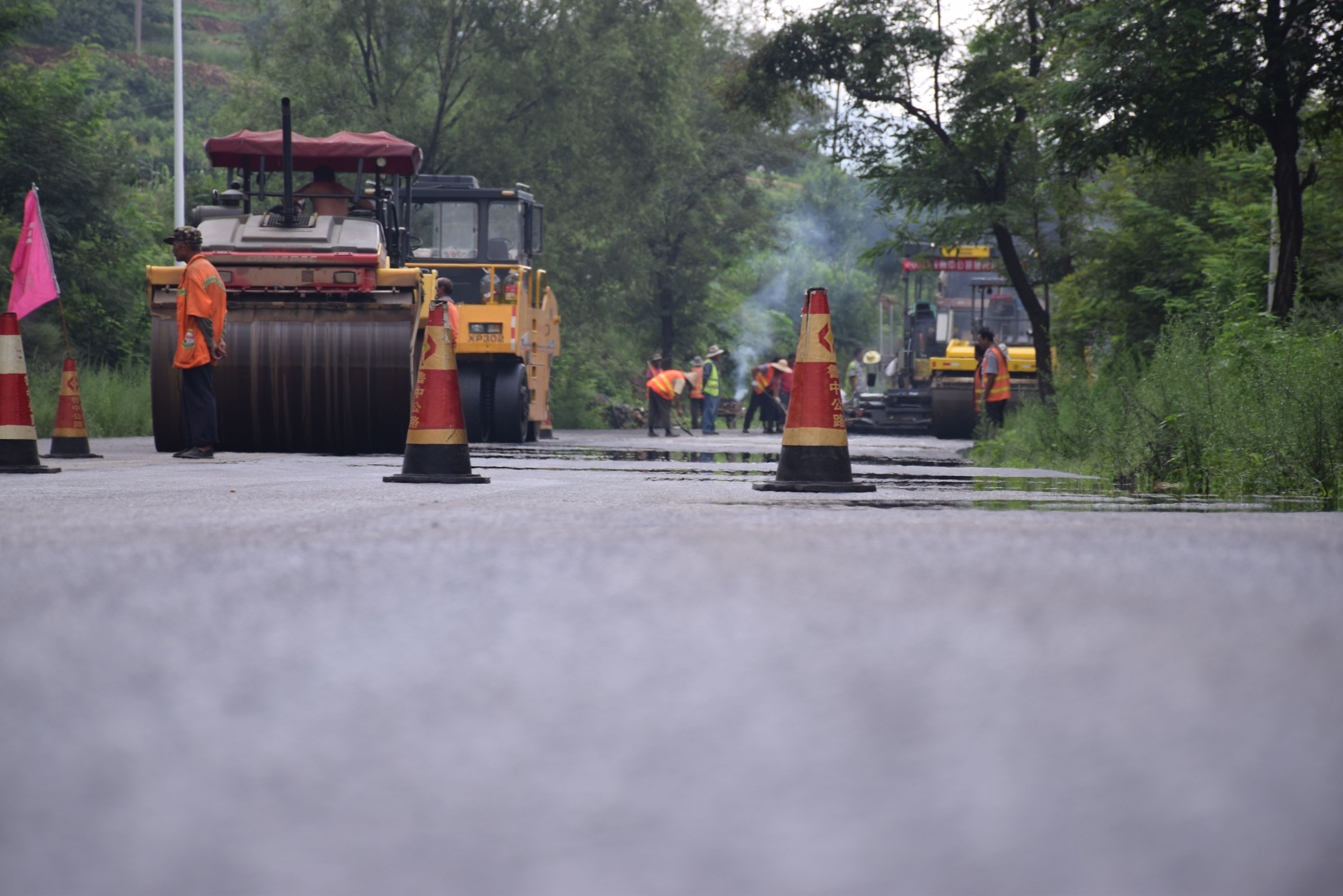 烈日下,博沂路上火熱的大干場面。