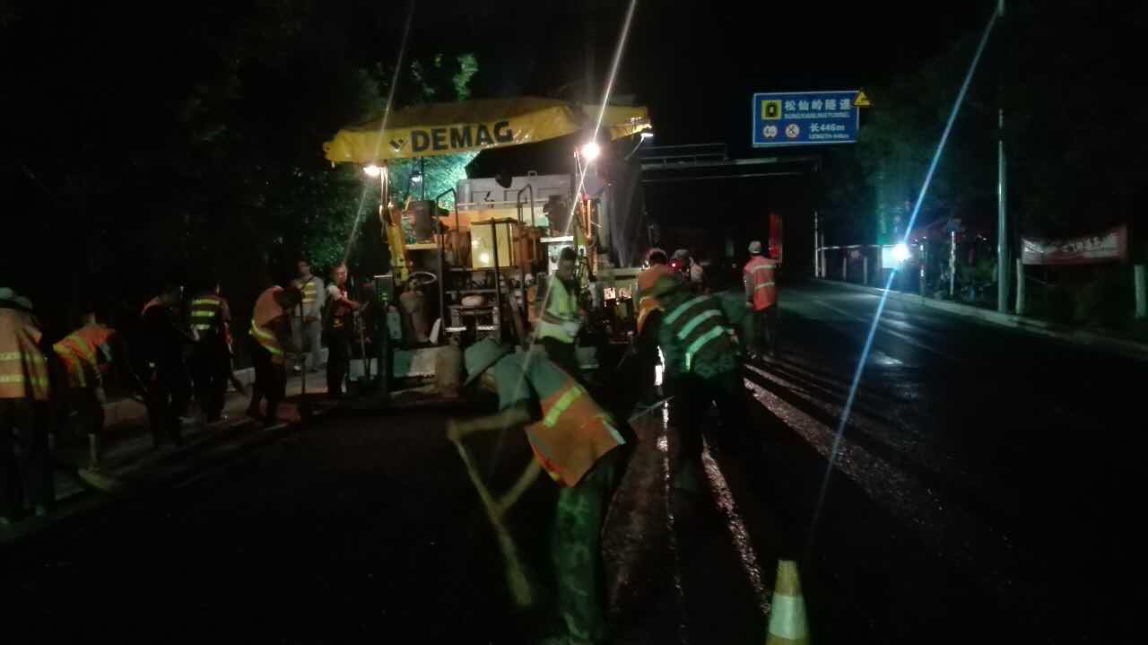 深夜,仍然堅守崗位的博沂路施工員們。