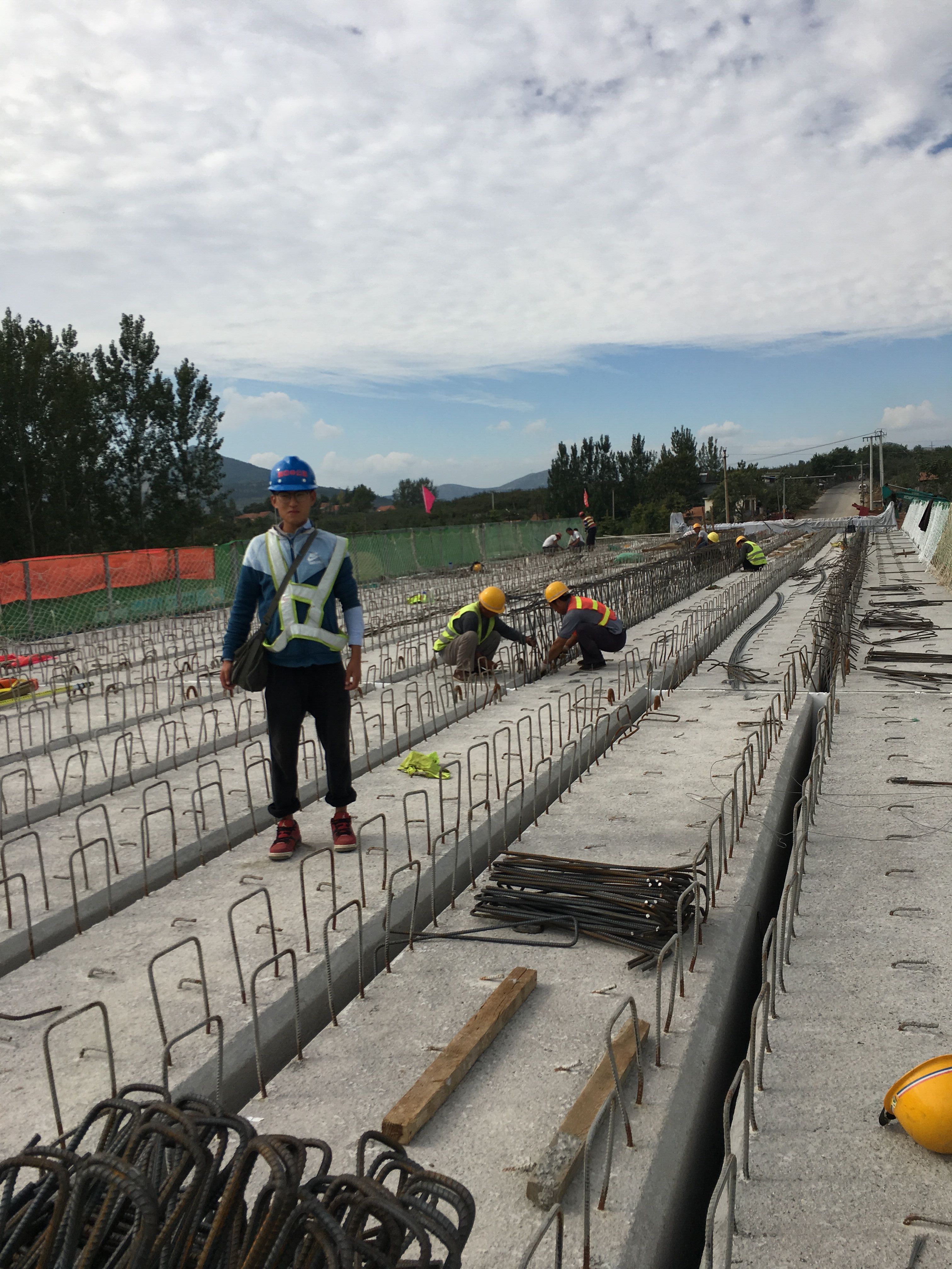10月1日上午10:50,橋梁施工技術(shù)負(fù)責(zé)人宋衍華堅(jiān)守在施工一線。