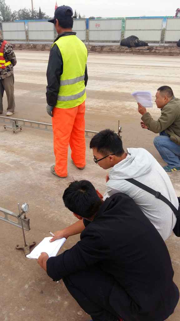 10月1日上午10:00,市政分公司試驗(yàn)室主任王同余在S102工地進(jìn)行彎沉值測(cè)定。